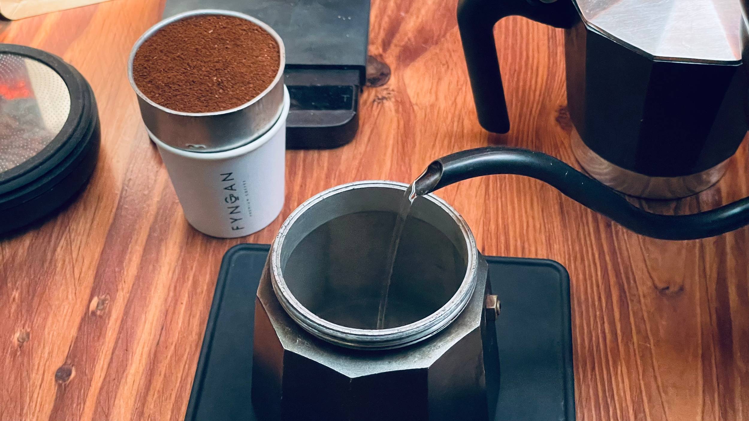 Start to boil your water while you prepare the coffee and Moka pot.