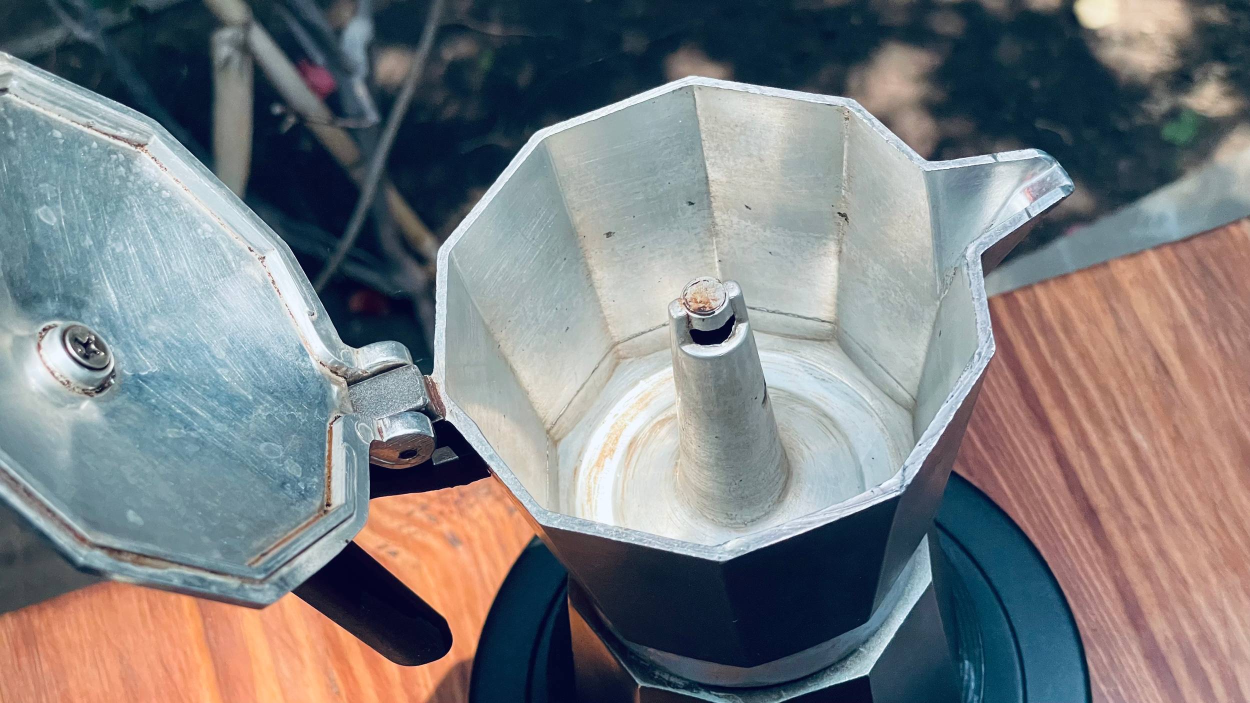 Drop the basket into the bottom part of the moka pot. Be careful as things will be hot.